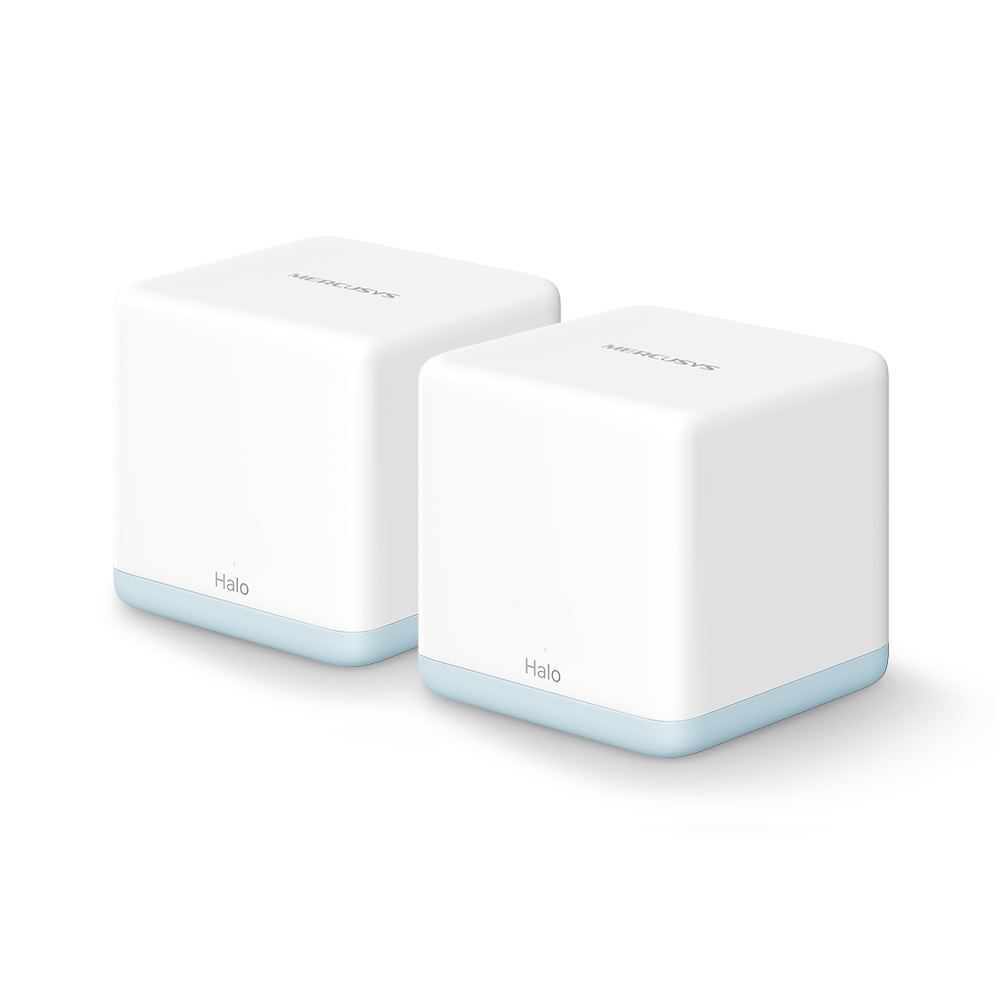 Mercusys Halo H30(2-pack). Colore del prodotto: Bianco, Tipo di antenna: Interno, Tipo di prodotto: Sistema Mesh. Banda Wi-Fi: Dual-band (2.4 GHz/5 GHz), Wi-Fi standard: Wi-Fi 5 (802.11ac), Standard Wi-Fi: 802.11a, 802.11ad, 802.11b, 802.11g, Wi-Fi 4 (802.11n), Wi-Fi 5 (802.11ac). Sicurezza firewall: SPI Firewall. Larghezza: 88 mm, Profondità: 88 mm, Altezza: 88 mm. Numero di prodotti inclusi: 2 pz, Numero di unità incluse: 2 pz
