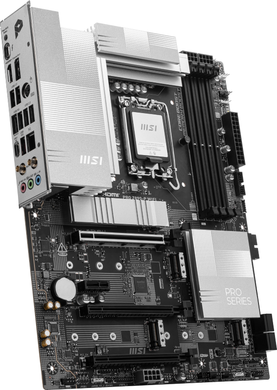 PRO Z890-P WIFI offre un design semplice con un armonioso schema di colori argento che si abbina perfettamente sia ai PC bianchi che a quelli neri.