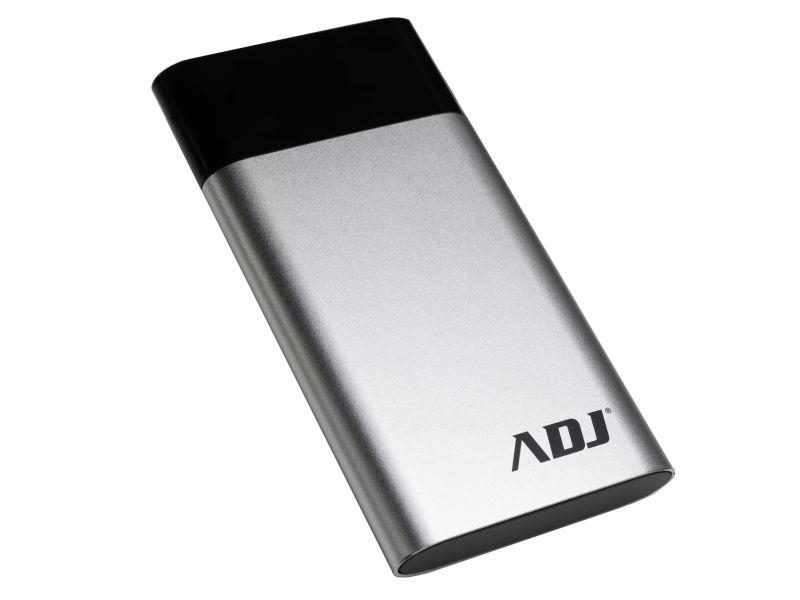 Power Bank ADJ serie HUNTER da 10000mah con 2 porte USB con controllo led e funzione torcia e scocca in alluminio colore Silver