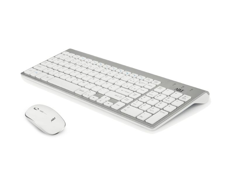 Kit Wireless ADJ KW10 Platinum: Tastiera Multimediale + Mouse Ergonomico - Resistente agli schizzi d'acqua - Colore Silver