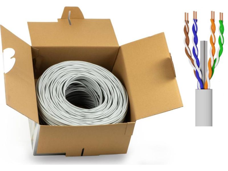 Bobina cavo di rete Matassa 305mt non schermato UTP cat5E sezione awg23 lszh Classe EC supporta reti Poe e Poe+