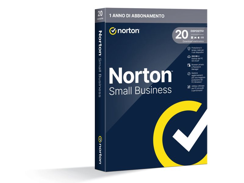 Norton Small Business con spazio di backup Cloud da 250 GB per 1 Utente e 20 Dispositivi durata licenza 1 Anno