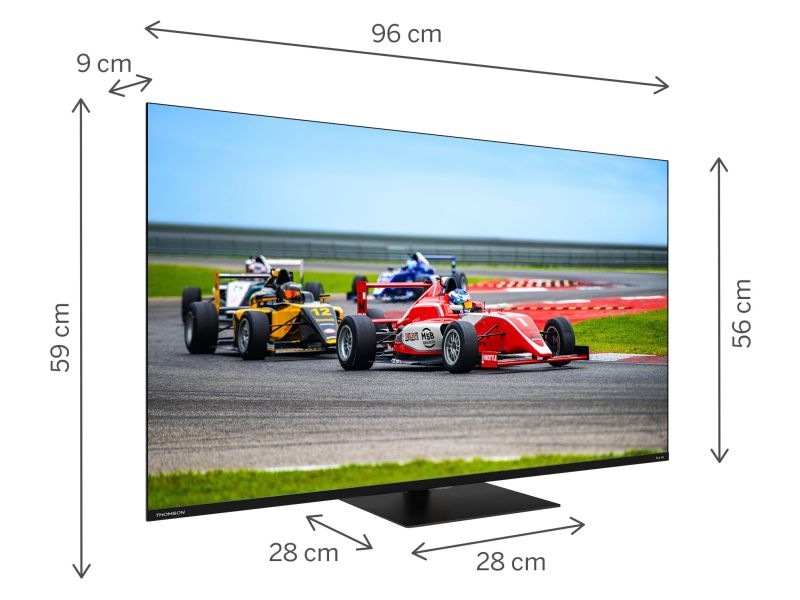 Thomson Smart Google TV 43" QLED Pro uhd 4K Quantum Dot 144HZ BorderLess dvb-T2/C2/S2 con piedistallo centrale Inclusi 3 anni di Garanzia produttore