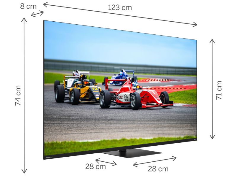 Thomson Smart Google TV 55" QLED Pro uhd 4K Quantum Dot 144HZ BorderLess dvb-T2/C2/S2 con piedistallo centrale Inclusi 3 anni di Garanzia produttore
