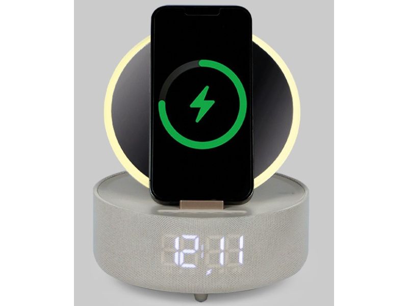 Ricarica in modalità wireless è compatibile con tutti i dispositivi che utilizzano tecnologia Qi. Il multifunzione incorporata di 2000 mAh che alimenta soltanto la lampada accesa con sveglia e orologgio ma per ricaricare il tuo device deve essere collegato ad una presa di corrente.