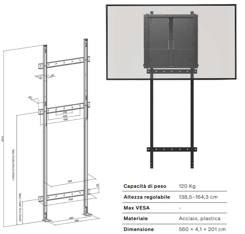 ✔ Portata fino a 120 kg: ideale per monitor interattivi di grande formato